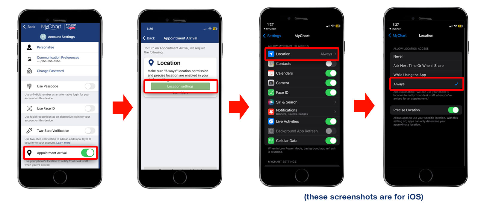 Skip the check-in line and use your smartphone instead. With the MyChart app, you can let your provider’s office know when you have arrived for your appointment before you even get inside. Follow these steps to enable an automatic, touchless check-in experience on your next visit. Currently offered at select locations.