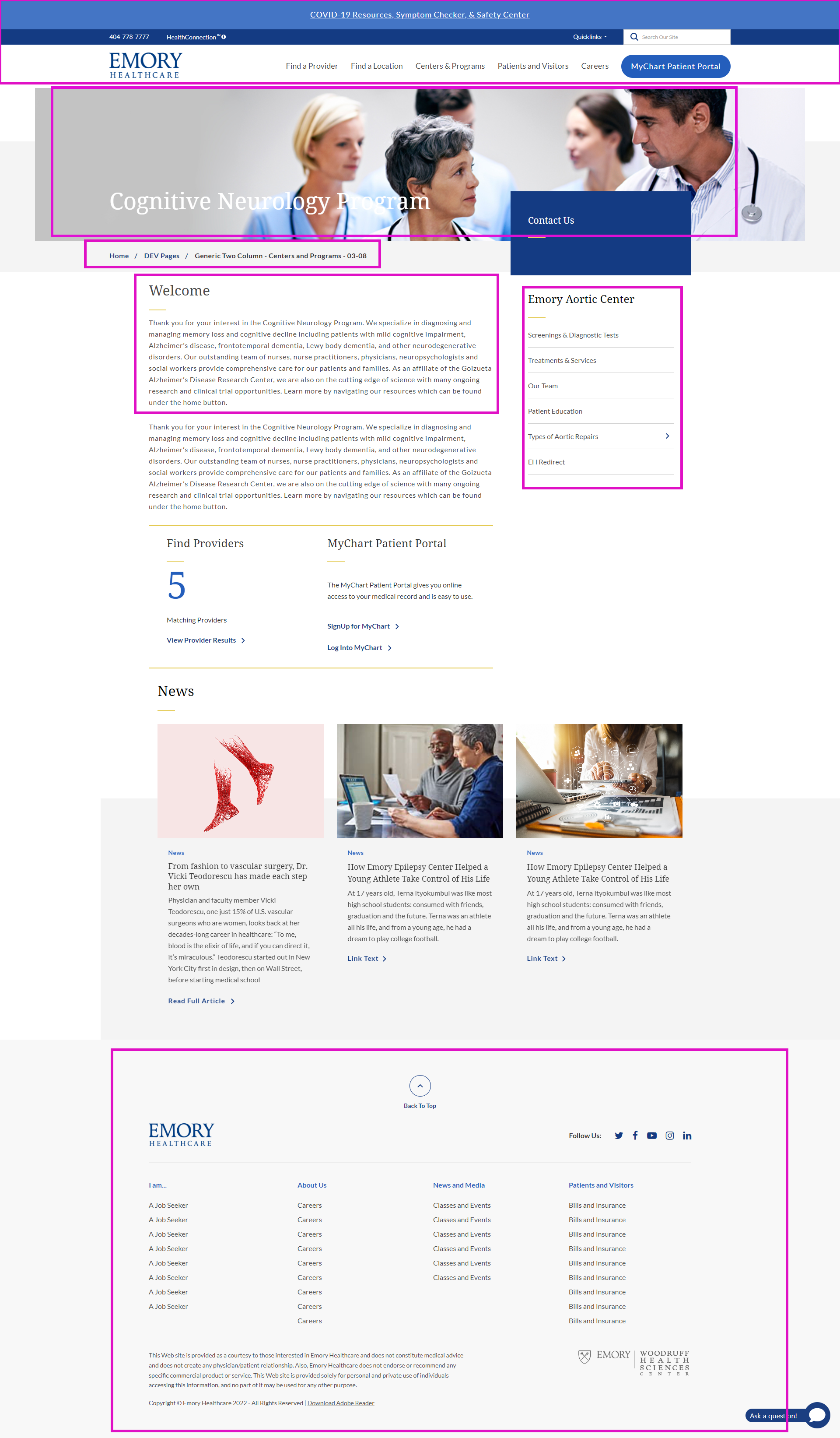 - Header Alert, Header and Footer are rendered using Generic Two Column page design.